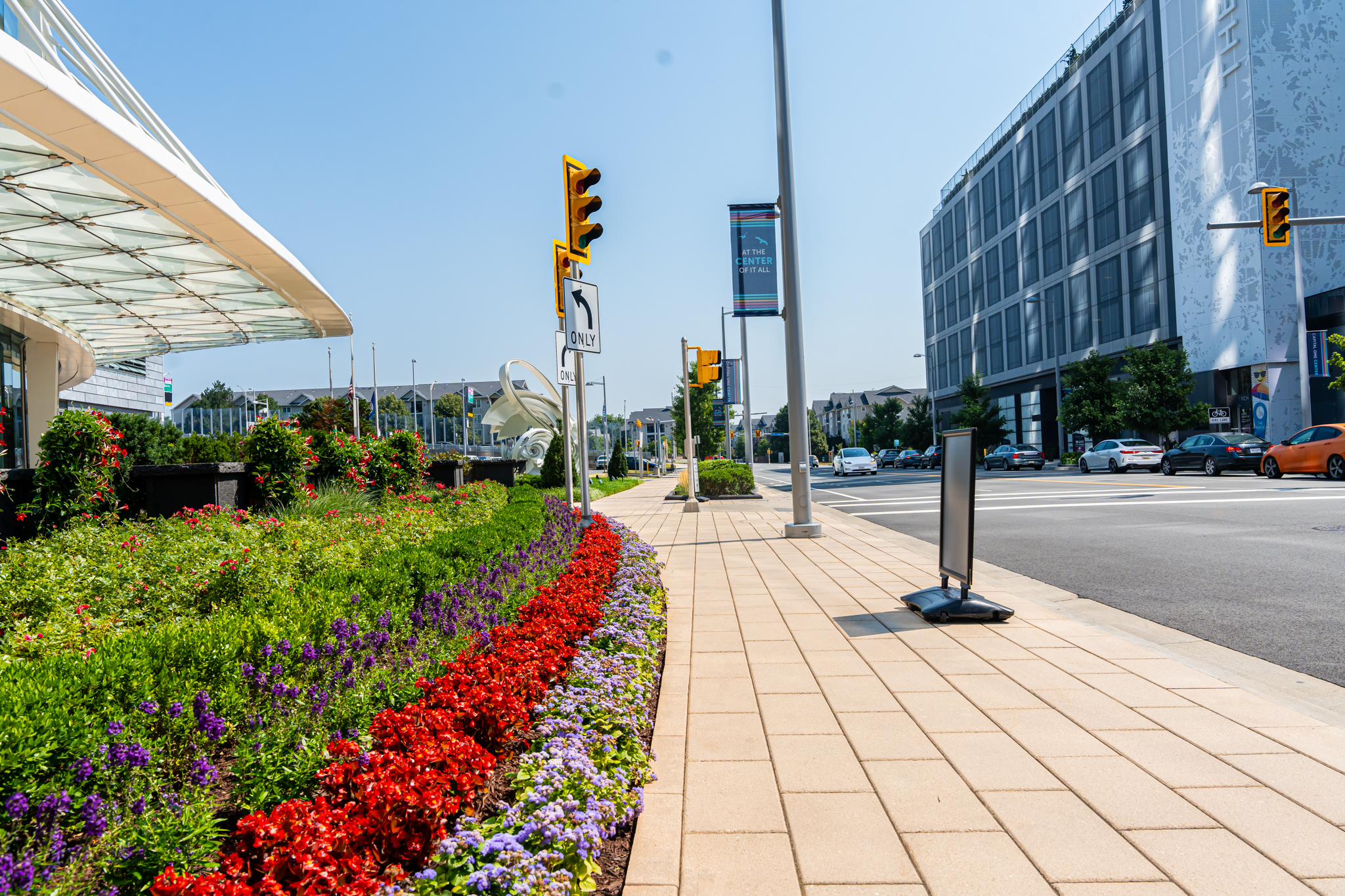 The most surprising landscaping challenge on this Virginia commercial property is the unpredictable foot traffic surges. This is due to a variety of attractions, including the concert hall, hotel, restaurants, and mini golf amenity. The 7,000 to 8,000 daily commuters in the area add to this challenge in more than one way.